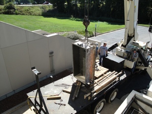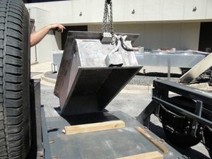 An I-Beam was lifted in, and securely attached to the top of the vault