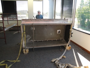 We guided it by hand, on dollies, across the building.